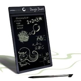 Product DescriptionYou've probably never heard of a Boogie Board LCD Writing Tablet. That's because it's brand new - the first ever LCD writing tablet. Not only is the Boogie Board Tablet new, it's revolutionary! The Boogie Board tablet is the tree-friendly electronic alternative to paper, pencils, and pens. With it, users of all ages will truly say goodbye to paper forever - and it's just as easy to use! Simply press on the surface with the included stylus or other suitable writing instrument (even your finger) to create an image and then erase with the push of a button. With the Boogie Board tablet, you'll never be without a memo pad again. No pen or pencil, no problem! Keep one by the home phone and by your computer at work to jot down memos, make to do lists, leave messages for others, capture your next big idea, and more. Keep one in your car, and you'll never be caught again looking for a piece of paper and pen to write important to-do's to get from the grocery store on the way home. But the Boogie Board tablet is more than just a memo pad. Students will find it's the perfect tool for practicing handwriting/arithmetic, drawing pictures and playing games (especially young and developmentally challenged students). If you're a coach, you can even use the Boogie Board tablet to diagram the winning play. Say goodbye to dry erase boards with smelly, dried up markers.Product Details